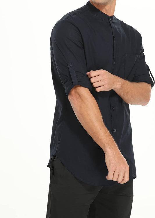 Men'S Guayabera Shirts Long Sleeve Button down Shirt Linen Solid Shirt Cuban Beach Tops